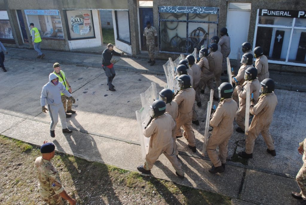 About 100 Bermuda soldiers today (TUES) started a major public order and internal security training exercise with a stand-off against rioters played by British Army soldiers.