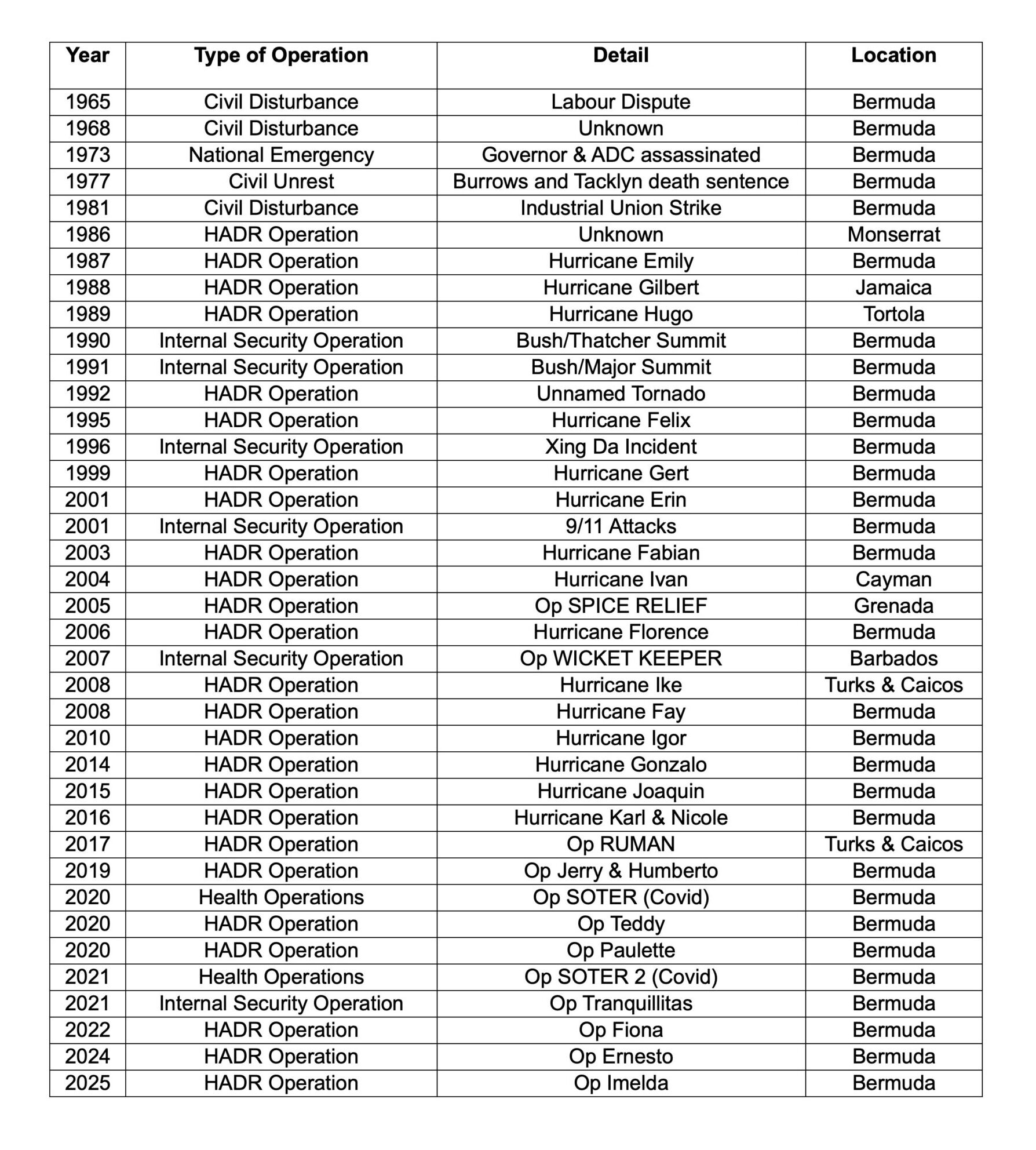 2) Humanitarian Assistance operations in Bermuda and/or overseas.