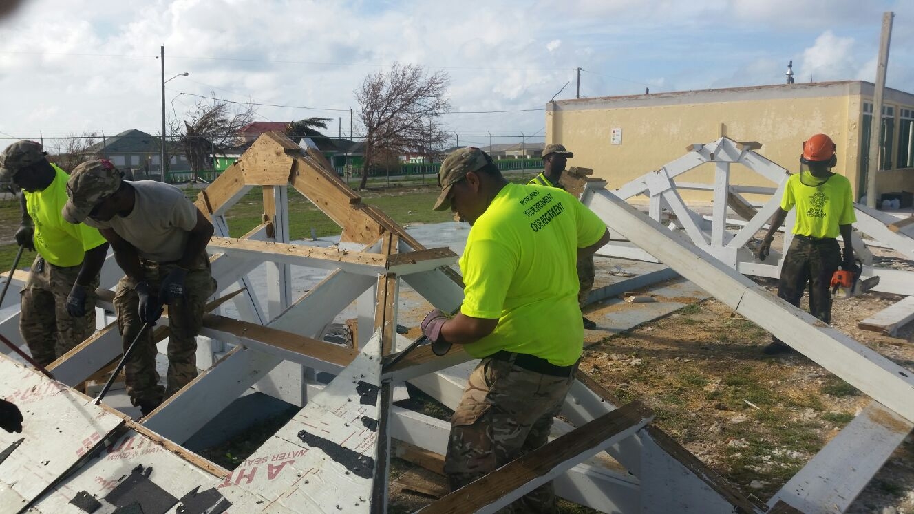 Bermuda soldiers had worked on the EL Simons Primary School on Grand Turk before Maria struck and repairs carried out so far have stood up well to Maria.